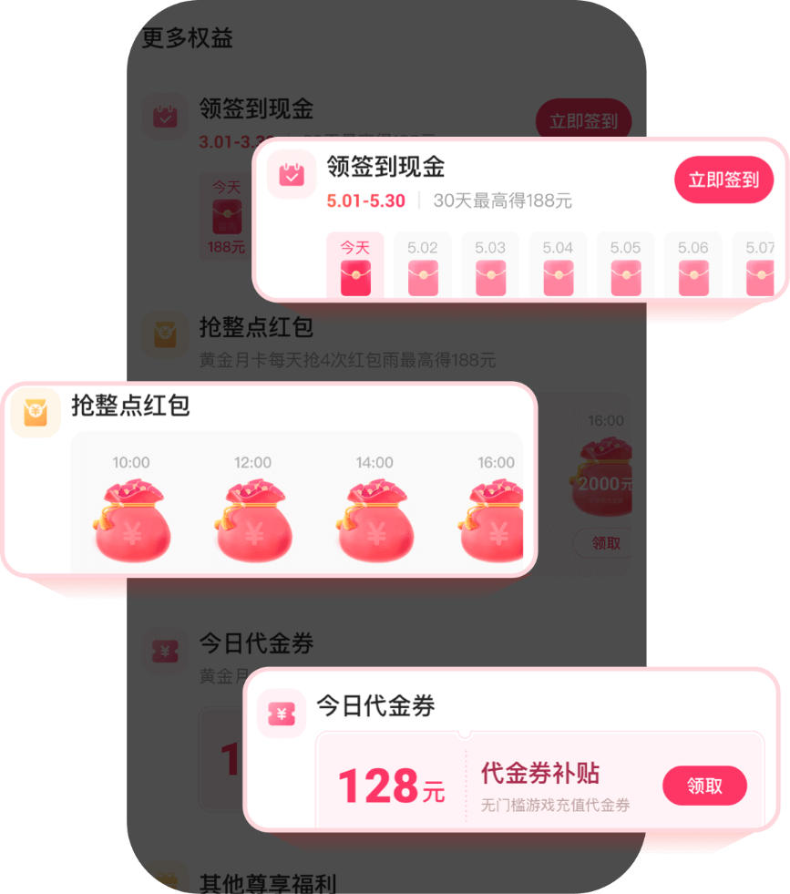 平台依托强大的运营中心,定期推出各种福利活动,签到、整点红包雨、新用户福利等,旨在为用户的游戏旅程增添无限乐趣与惊喜